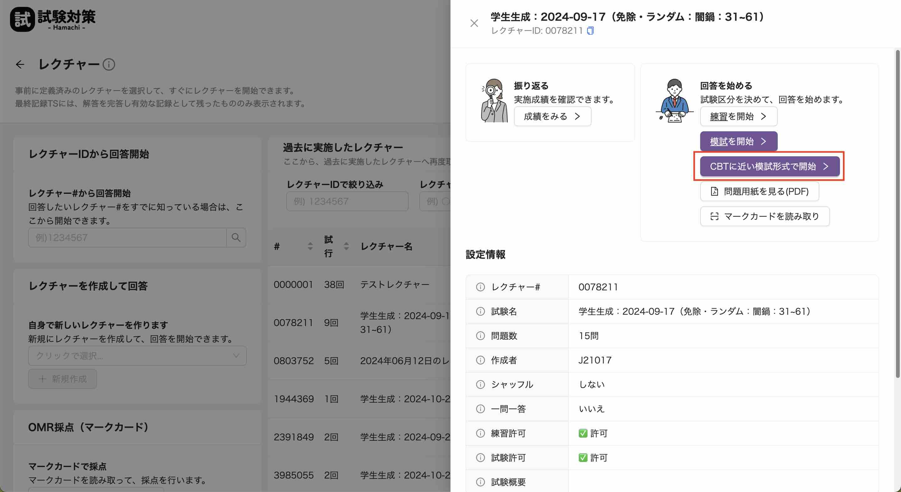 CBT形式で受験できるのは、あらかじめ工程が決まっている問題集のみです。