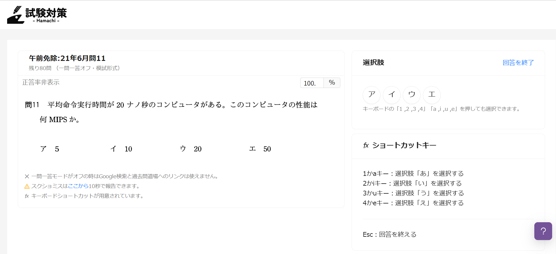 まずは、試験対策システムを起動させましょう。こちらからウェブシステムhamachiを起動してください。
