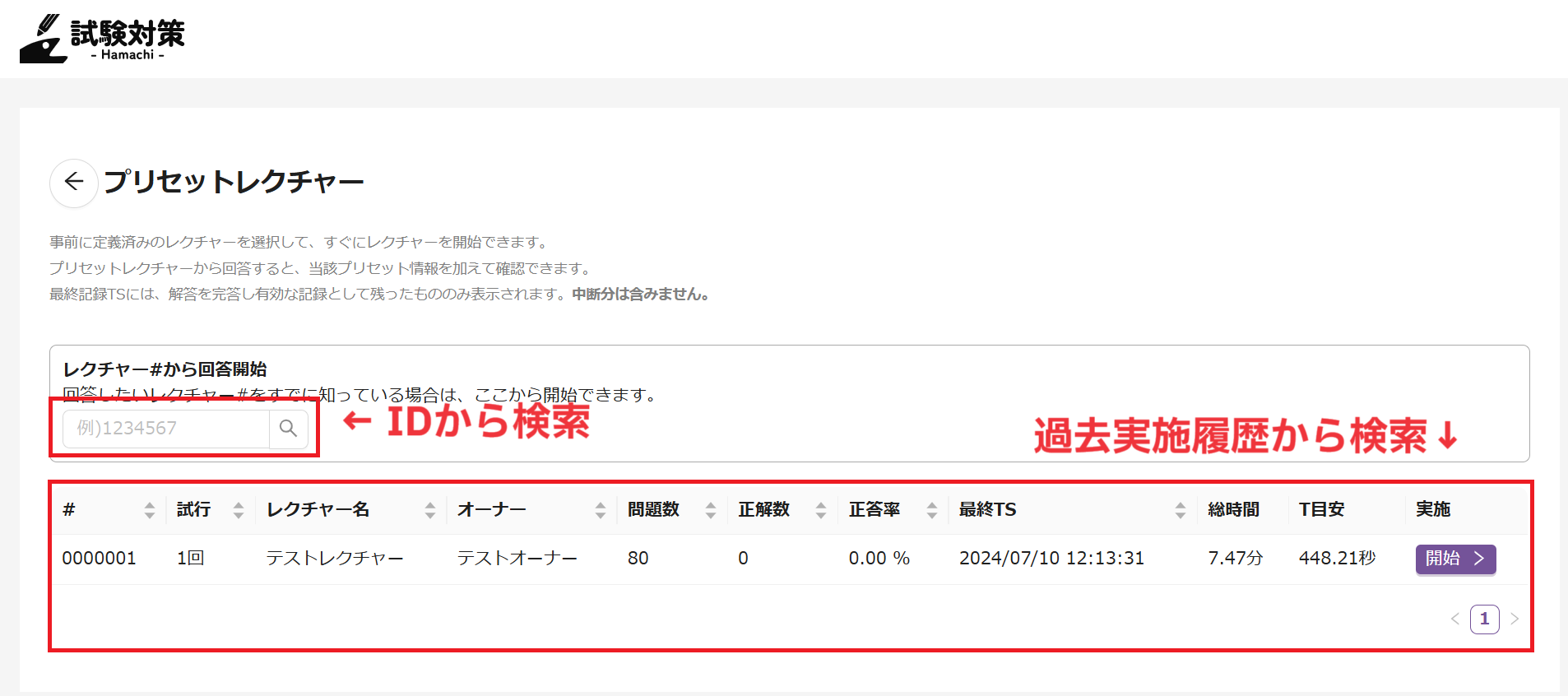 表示されていない問題集に取り組むには、問題集IDの手動入力が必要となりますので、上部の入力欄に問題集IDを入力し「🔎」ボタンを押します。