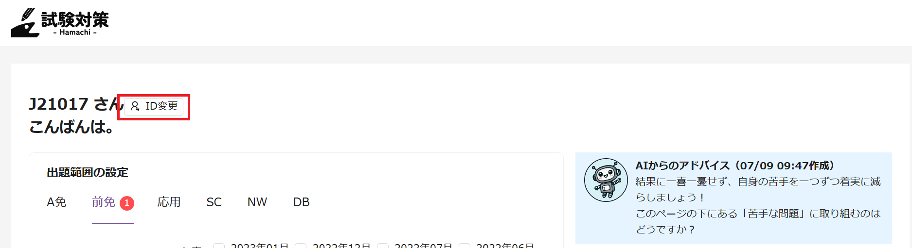 HOME画面から、画面上の方にある「ID変更」をクリックします。