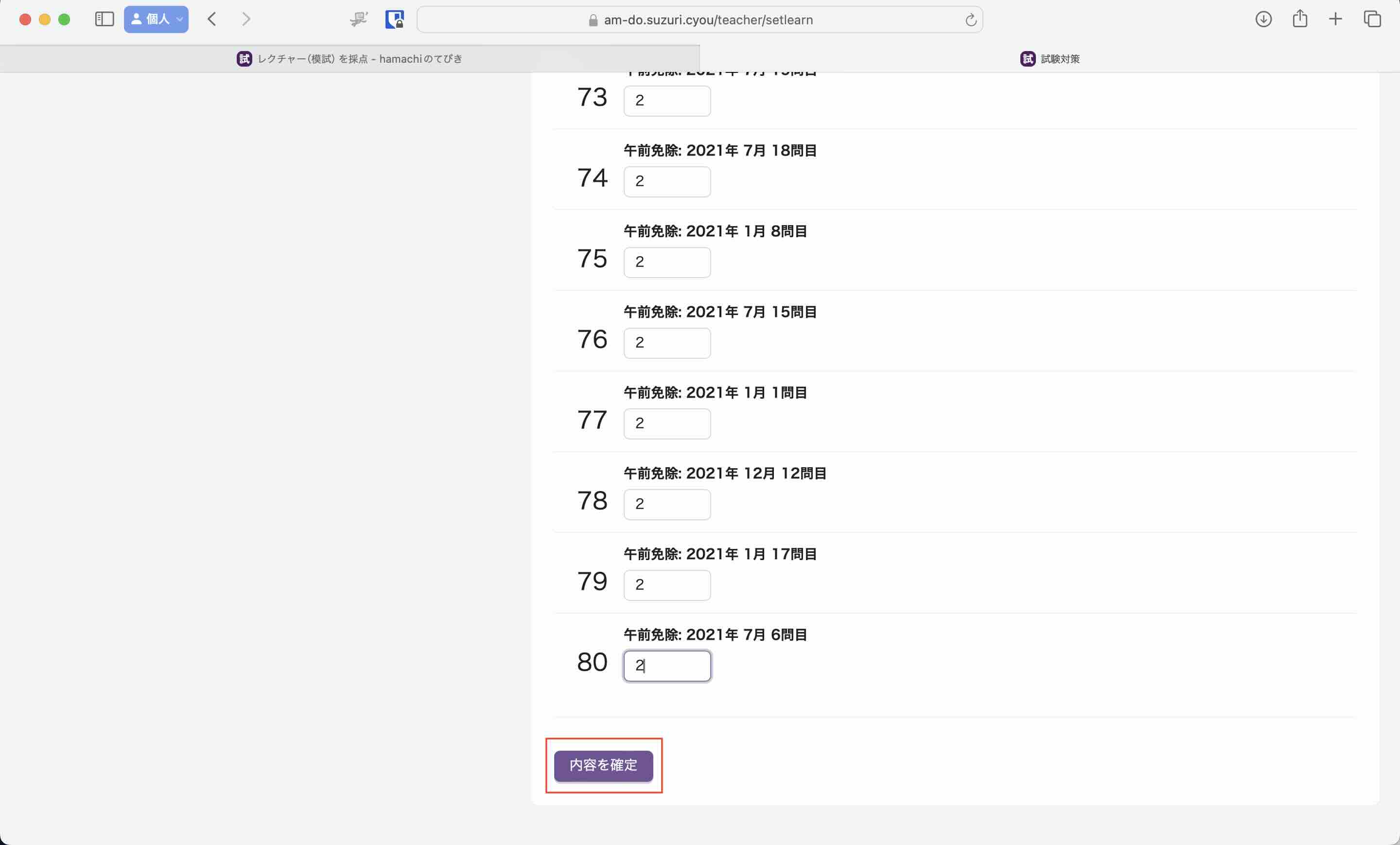 指定を終えたら、「内容を確定」ボタンをクリックして、成績をシステムへ登録します。