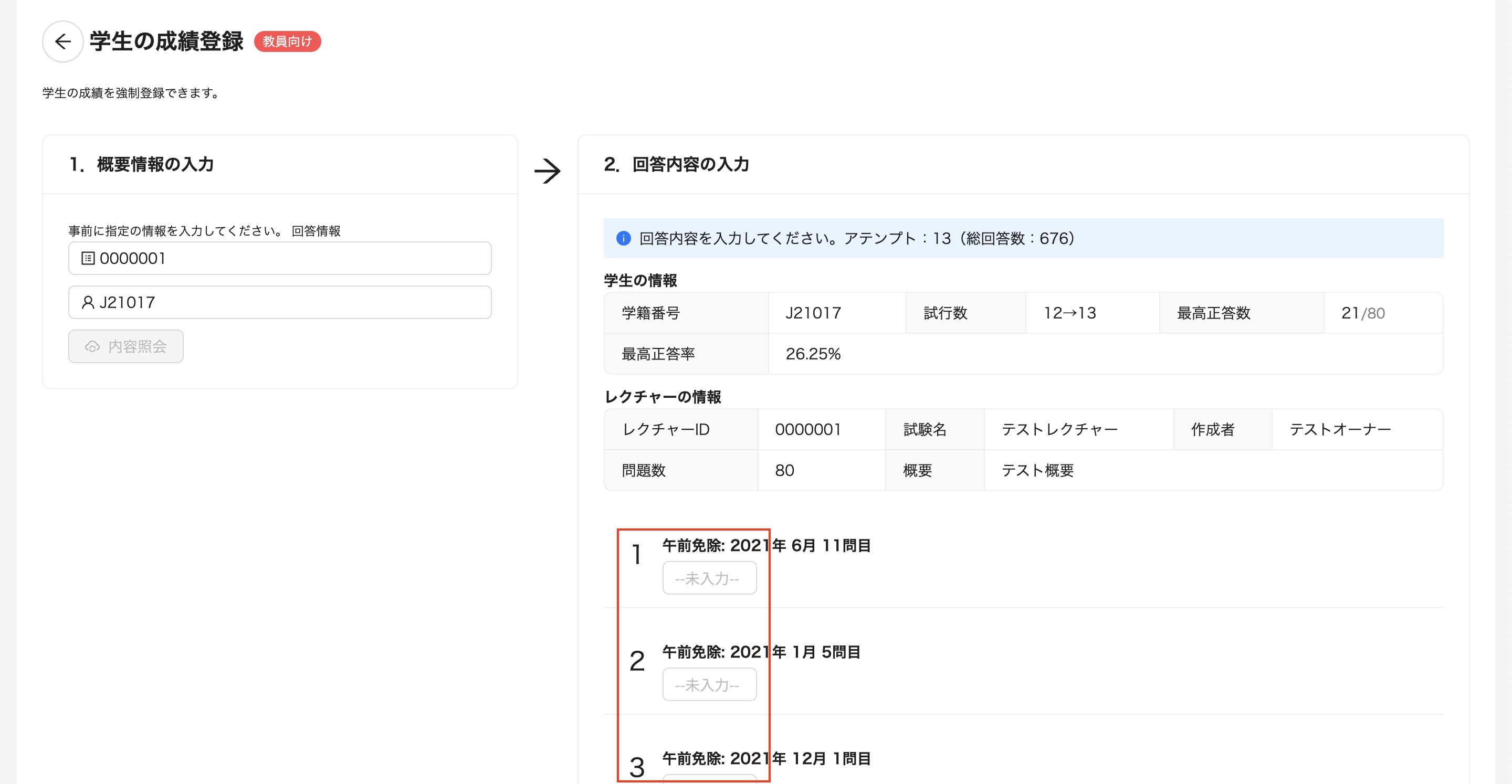 学生の回答を確認しながら、システムへ転記作業を実施してください。
